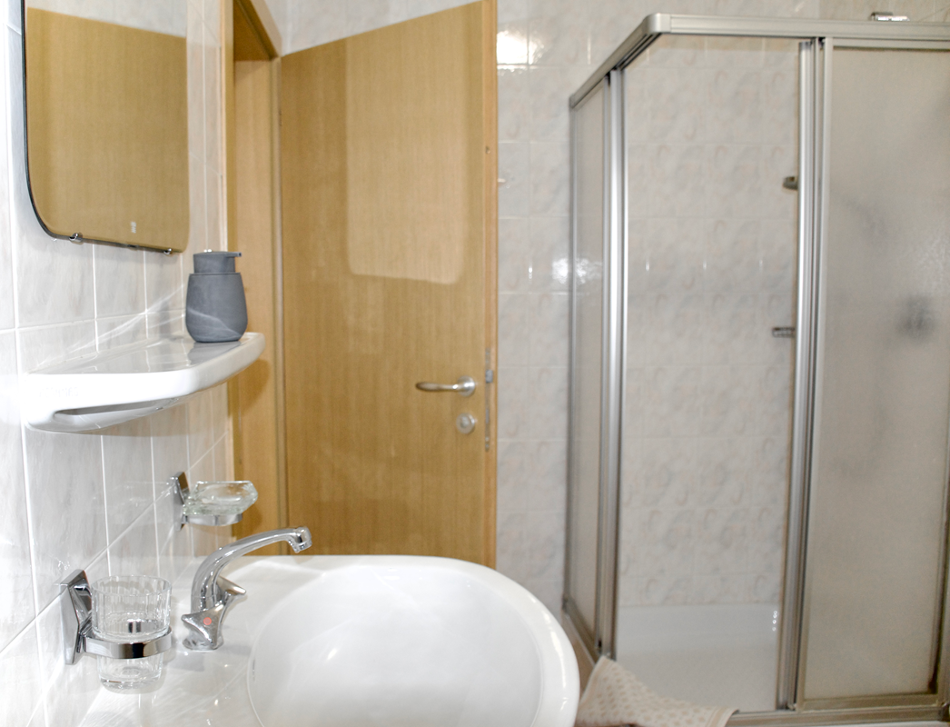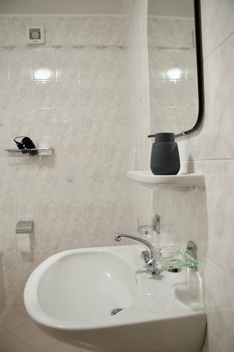 Externes Bad: Das Zimmer verfügt über ein eigenes, exklusiv für Sie reserviertes großes Badezimmer (mit Dusche und Badewanne). Es befindet sich direkt gegenüber im Flur.